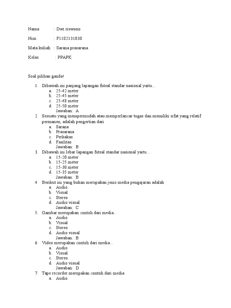 Soal Sarpras Dan Jawaban Ilmu Soal from imgv2-1-f.scribdassets.com We did not find results for: Soal dan jawaban sarana dan prasarana kelas 11. Maybe you would like to learn more about one of these? Check spelling or type a new query.